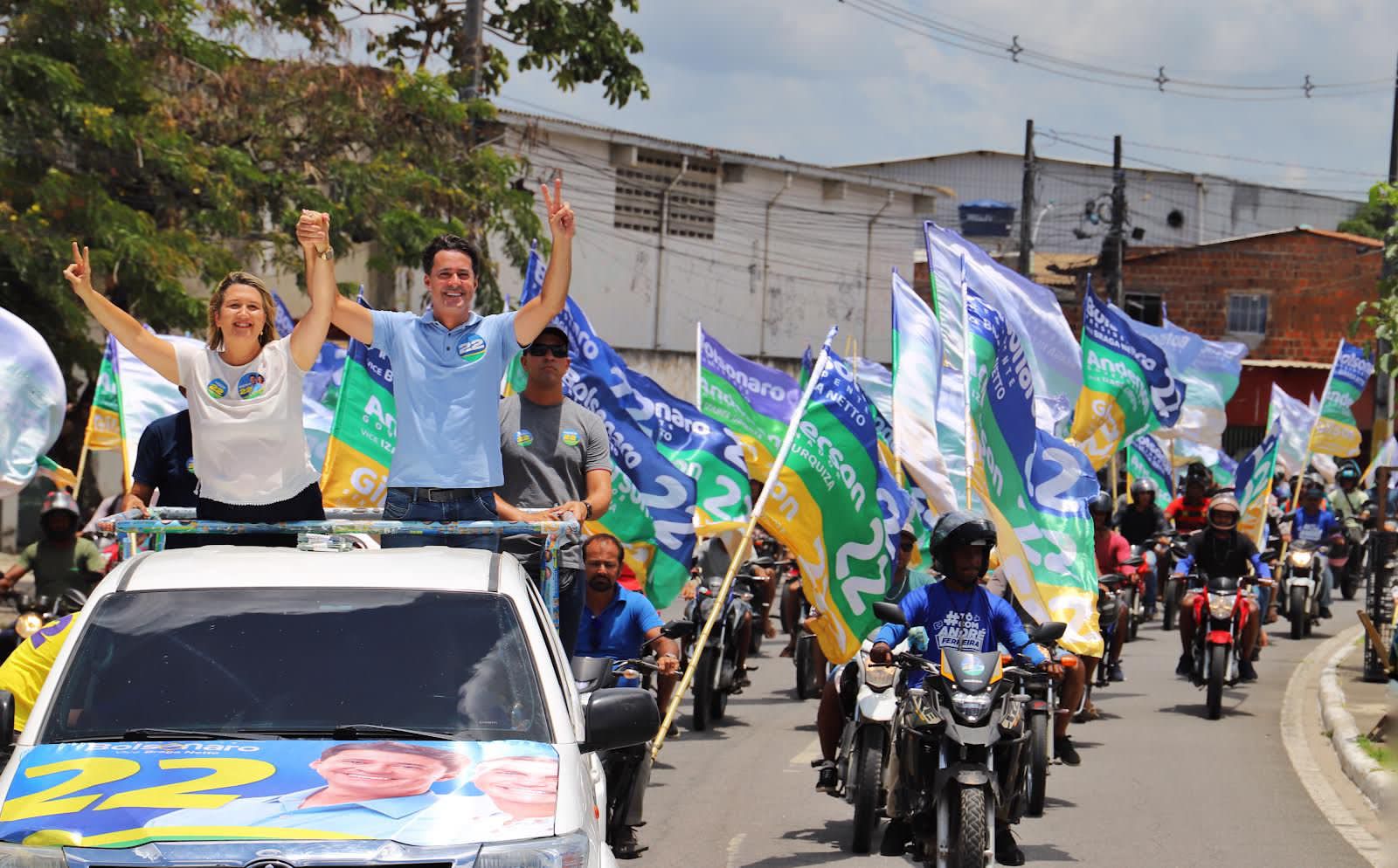Ao lado da candidata a vice-governadora, Izabel Urquiza (PL), Anderson Ferreira acenou e cumprimentou populares ao longo do evento de campanha.