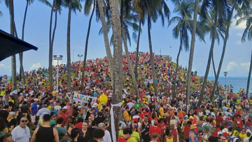 Milhares de pessoas foram às ruas de Salvador (BA) neste domingo (21) para protestar contra a PEC da Blindagem e o PL da Anistia, propostas em debate no Congresso Nacional. A manifestação aconteceu em frente ao Morro do Cristo, na Barra, e contou com a participação de artistas que deram o tom político e cultural ao ato.
