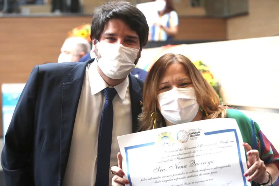 Indicada pelo vereador Zé Neto (PROS), Nena Queiroga teve a biografia destacada pela contribuição, como voz feminina que sempre enalteceu e valorizou o frevo, ritmo único já reconhecido como Patrimônio Cultural Imaterial da Humanidade. Além dela, mais de 50 artistas, agremiações, personalidades e empresas foram reconhecidos pelo trabalho de valorização do frevo, no mês em que se celebra o mais pernambucano dos ritmos musicais. “O frevo está na nossa alma, por isso nos unimos em torno da sua difusão, destacando aqueles que trabalham em prol da cultura”, afirmou o vereador Zé Neto, ressaltando a alegria, espontaneidade e compromisso da cantora Nena Queiroga, como representante desse movimento.