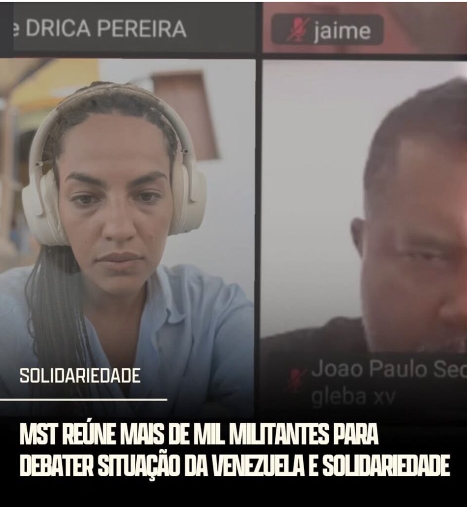 “Em uma reunião com mais de 1.000 militantes do @movimentosemterra de todo o Brasil, debatemos as atualizações sobre o ataque imperialista à Venezuela, que bombardeou o país e sequestrou o presidente Nicolás Maduro. Estamos construindo uma ação de solidariedade ao povo venezuelano e da sua soberania nacional”, afirmou Rosa Amorim na publicação.