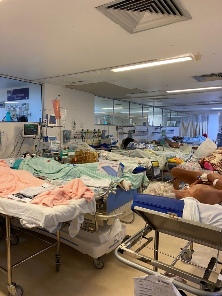 Os fiscais constataram ainda vários outros pontos de infiltração, com paredes mofadas; posto de enfermagem sem condições adequadas; e local de repouso dos profissionais insalubre. No incidente de ontem, ninguém se feriu, mas expôs ainda mais os problemas recorrentes na maior emergência pública do Estado.
