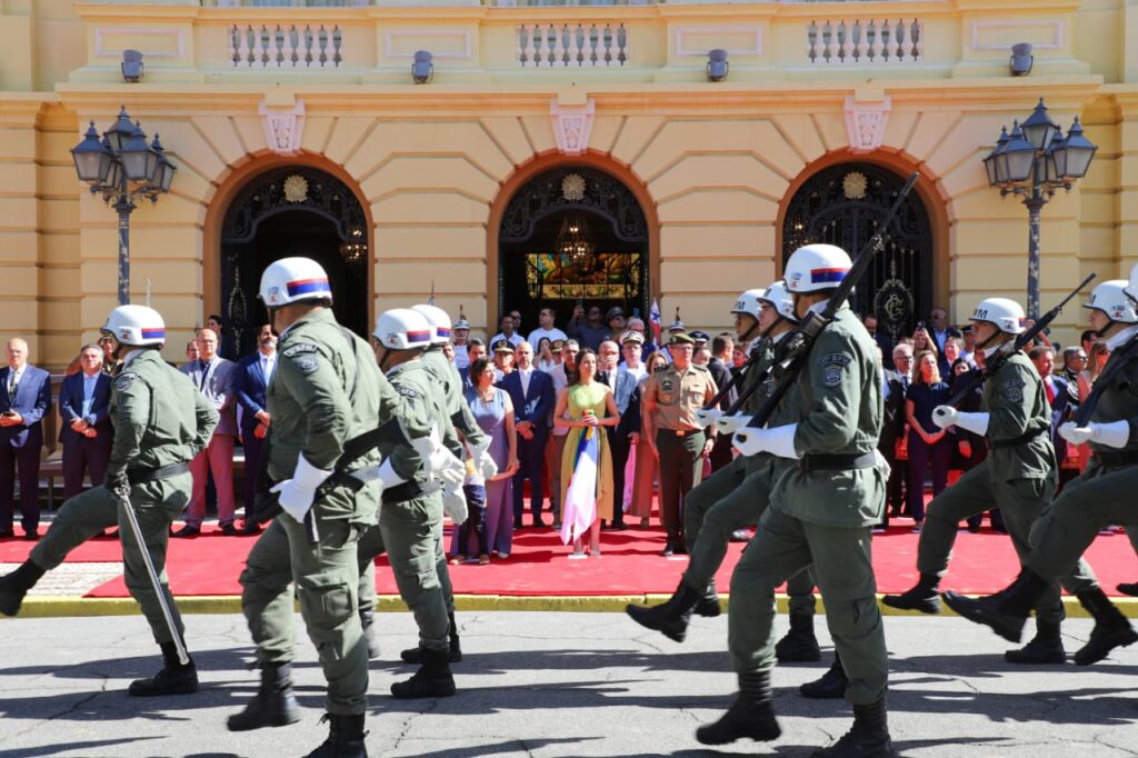 Ainda na cerimônia, as bandeiras do Brasil, de Pernambuco e da Insígnia do Governo do Estado foram hasteadas pela governadora Raquel Lyra, pela vice-governadora Priscila Krause e pelo comandante do Comando Militar do Nordeste (CMNE), general de Exército Francisco Carlos Machado Silva.