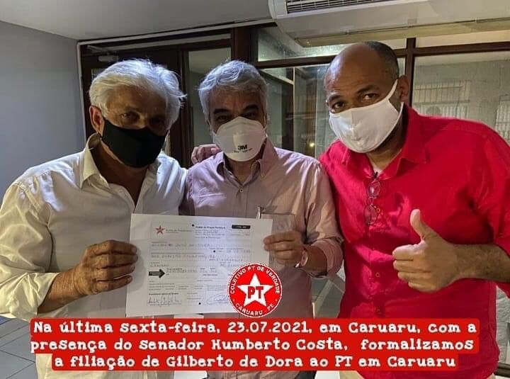 O ex-vereador Gilberto de Dora tem uma treta com o PT de Caruaru. O político chamou à imprensa para um café da manhã nesta quinta-feira (23) e no convite tem a marca da estrela do PT. Aliados dele chegaram a informar que Gilberto poderia disputar um mandato de deputado estadual pelo Partido dos Trabalhadores. No entanto, Gilberto, que foi o primeiro vereador eleito pelo PT em Caruaru, não está filiado a legenda, já que ele disputou o mandado de vereador pelo PSDB a pedido da prefeita Raquel Lyra e não obteve êxito no pleito.