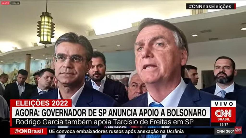 Governador de São Paulo declara apoio a Bolsonaro e Tarcísio de Freitas