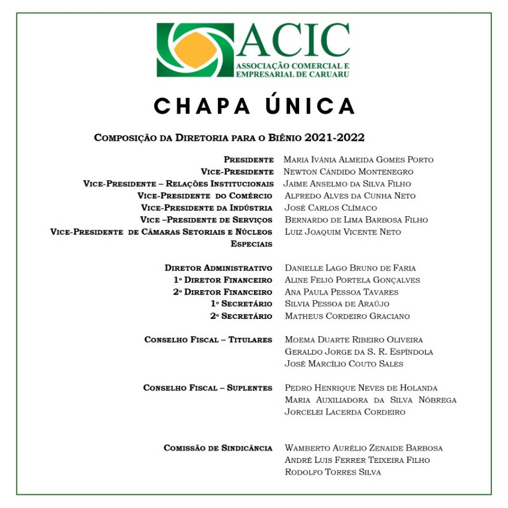 Na vaga de vice-presidente está Newton Montenegro e na direção estão nomes como; Jaime Anselmo, Alfredo Alves, José Carlos Clímaco, Bernardo Filho e Vicente Neto. Na direção administrativa estará Danielle Lago. O diretor administrativo da Rádio Cidade, Rodolfo Silva, também faz parte da direção. Abaixo a imagem com toda composição da nova direção da Acic.