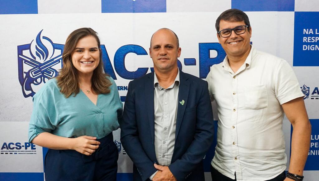 A pré-candidata ao Governo de Pernambuco, Marília Arraes, participou de um encontro na Associação Pernambucana dos Cabos e Soldados (ACS-PE), na manhã desta quinta-feira (19), para ouvir as principais demandas da categoria. A pré-candidata foi recebida por Luiz Torres, presidente da associação. O delegado Israel Rubis, vice-prefeito de Arcoverde e pré-candidato a deputado federal, também esteve na ACS.