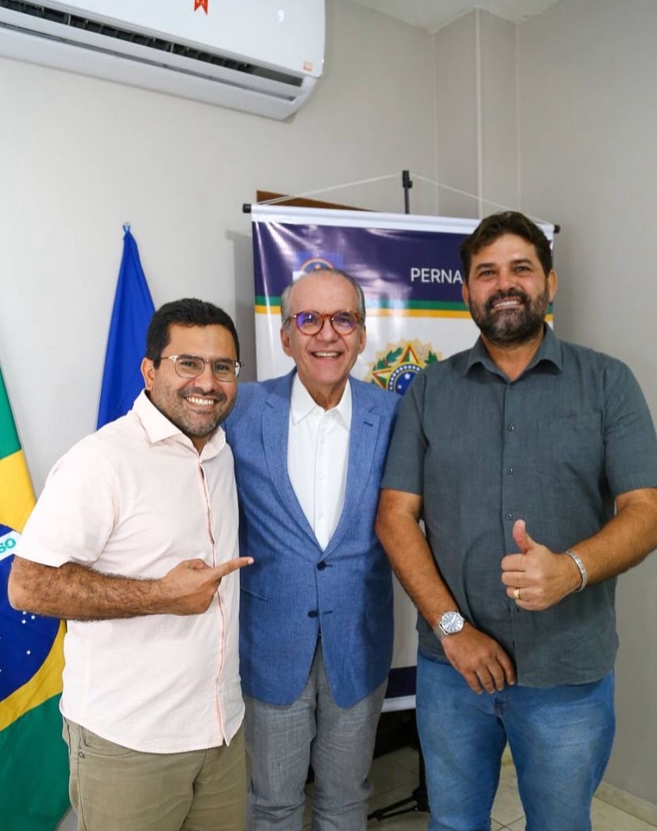 O senador Fernando Dueire recebeu, nesta semana, o apoio do prefeito de Exu, Junior Pinto Saraiva, e do ex-prefeito Raimundinho Saraiva à sua reeleição. Os gestores destacaram o compromisso do parlamentar com o fortalecimento do municipalismo e sua atuação em Brasília na liberação de recursos e projetos que beneficiam diretamente a população.