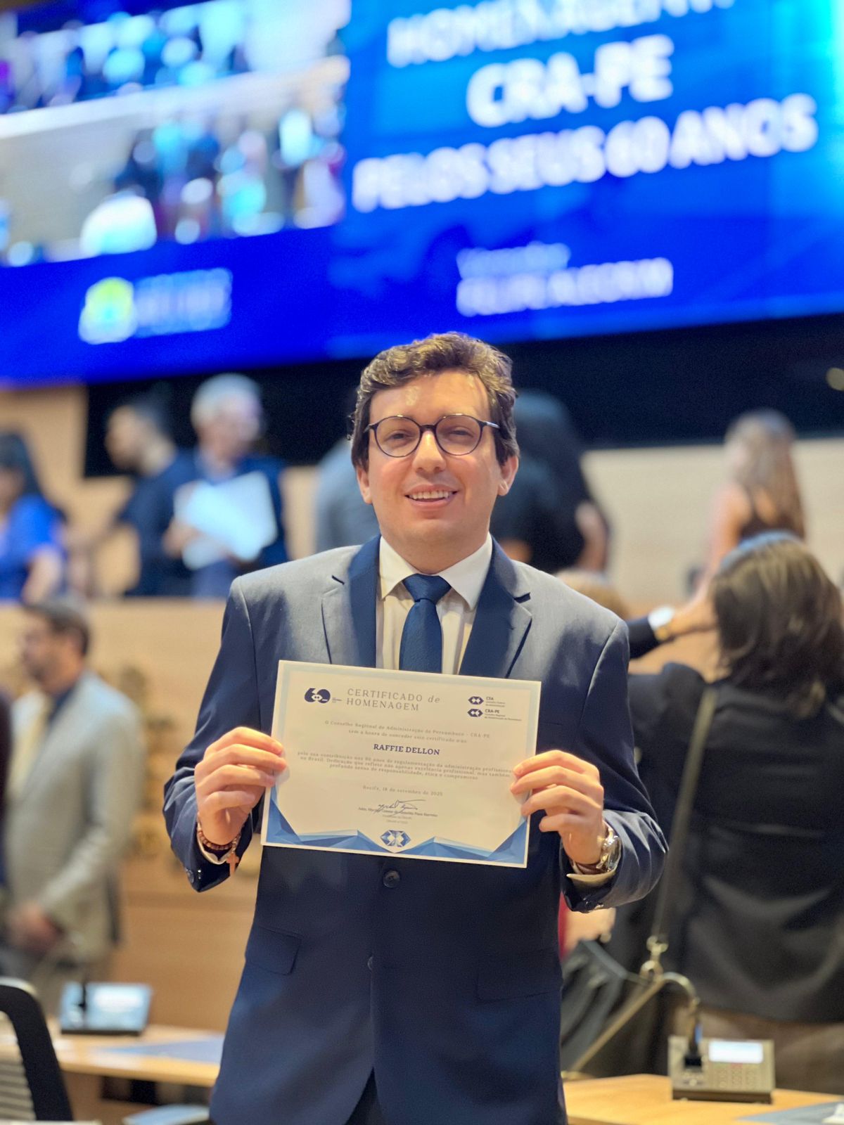 O Administrador, Secretário Executivo do CONIAPE (Consórcio Público Intermunicipal do Agreste Pernambucano e Fronteiras), maior Consórcio Público do nordeste, e pré-candidato a Deputado Estadual, Raffiê Dellon, foi um dos homenageados da Solenidade de Jubileu de Prata do Conselho Regional de Administração de Pernambuco, que ocorreu ontem na Câmara Municipal do Recife.