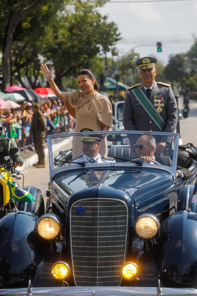 Ao lado da vice-governadora Priscila Krause, do Comandante Militar do Nordeste, General de Exército Maurílio Miranda Netto Ribeiro, e do secretário-chefe da Casa Militar, coronel Hercílio Mamede, a chefe do Executivo estadual recebeu honras militares e realizou a revista das tropas. Durante sua fala, Raquel Lyra destacou o simbolismo da presença de jovens no ato.