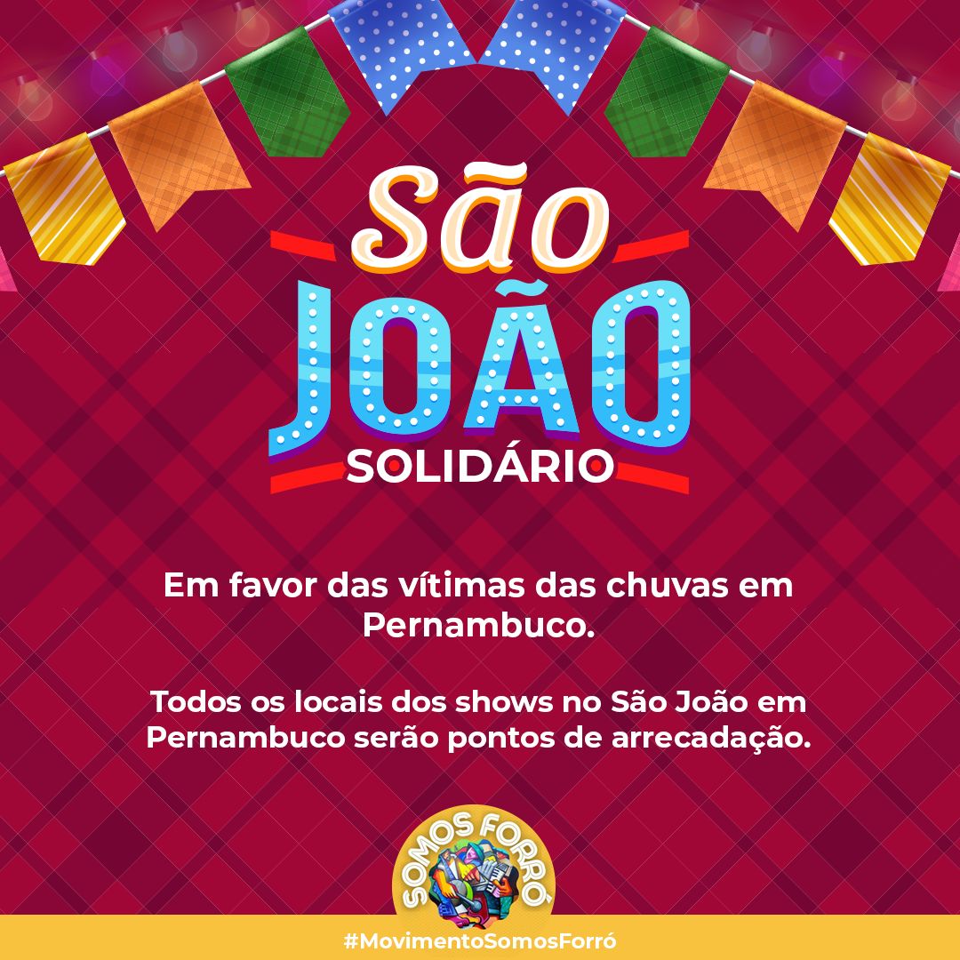 O São João Solidário é uma campanha que buscará atingir objetivos sócio-econômico-culturais em duas perspectivas. Primeiro, em garantir que as festas juninas sejam polos de arrecadação de alimentos, roupas, e demais contribuições para ajudar as famílias vítimas das chuvas.