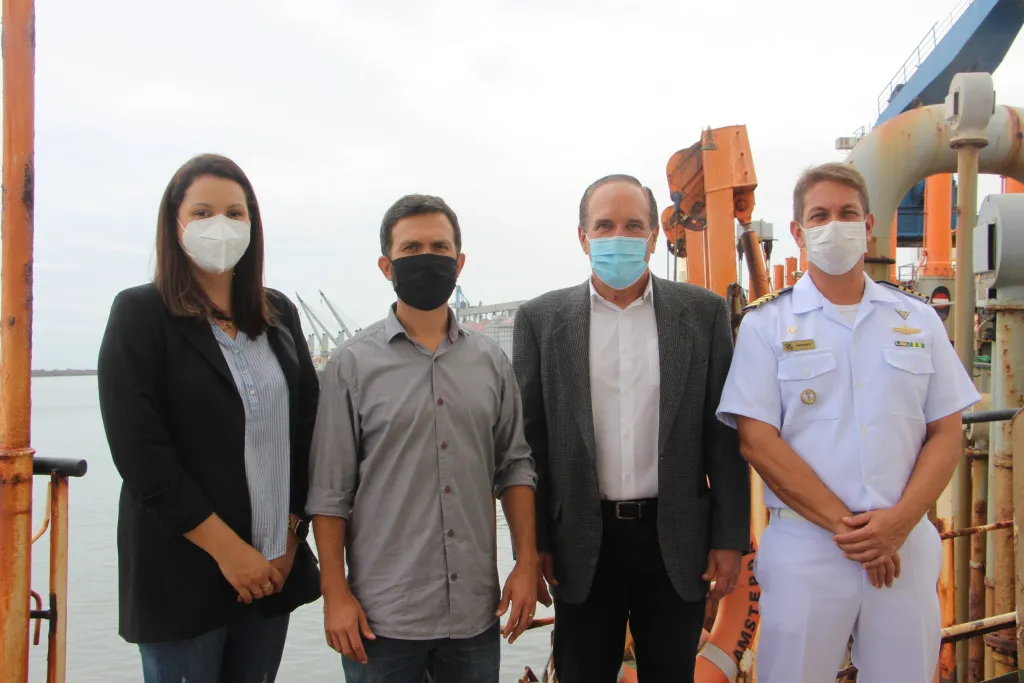 Na ocasião, o grupo aproveitou para conhecer a draga Lelystad por dentro, visitando a sala de controle da embarcação e suas instalações. O secretário de portos Diogo Piloni; o Capitão dos Portos Frederico Medeiros; a Diretora de Infraestrutura Aquaviária Karoline Brasileiro e o presidente do ancoradouro José Lindoso participaram da visita.