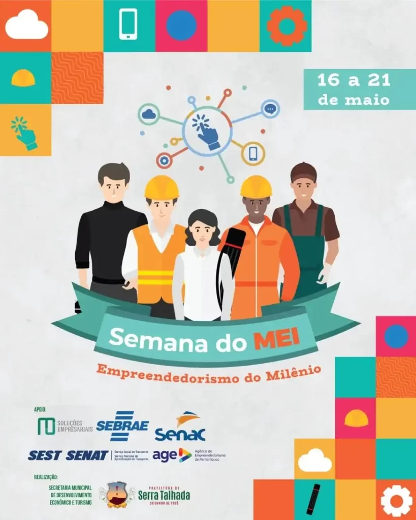 A Semana do MEI – “Empreendedorismo do Milênio” é uma realização da Prefeitura de Serra Talhada, através da Secretaria Municipal de Desenvolvimento Econômico e Turismo, e em parceria com Sebrae, SENAC, SEST SENAT, MJ Soluções Empresariais e Agência de Empreendedorismo de Pernambuco (AGE).