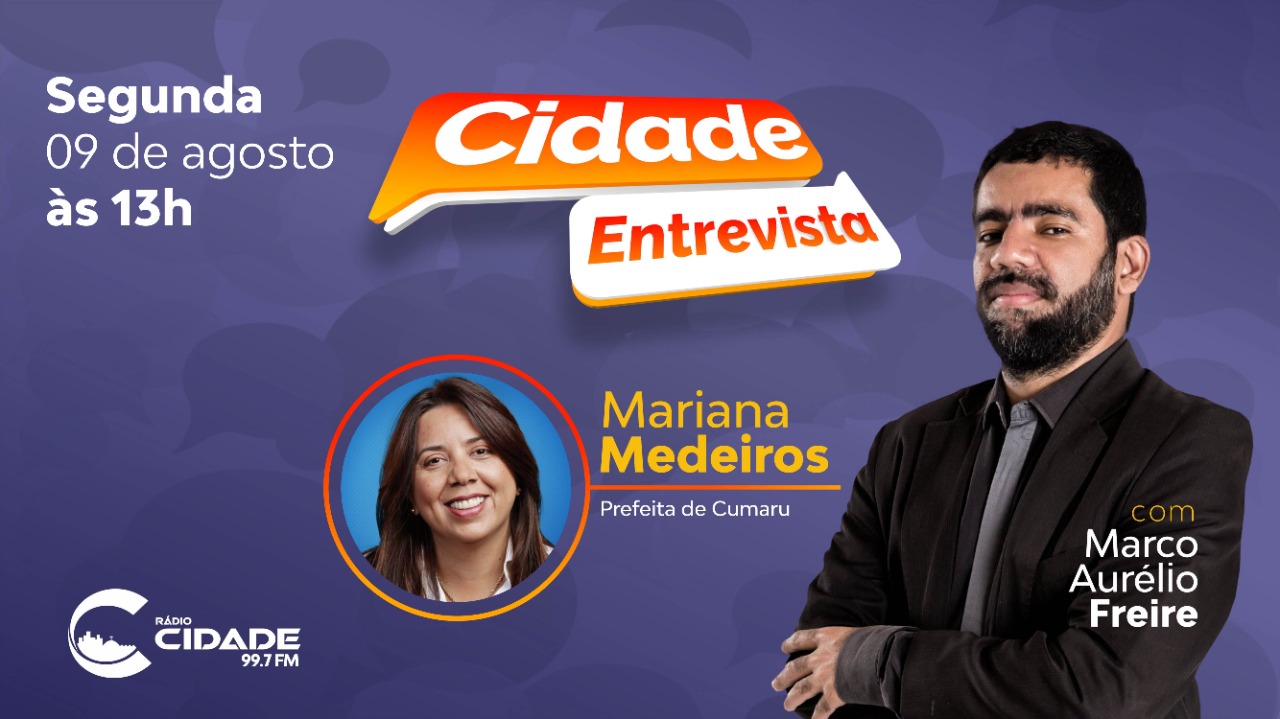 No programa Cidade Entrevista desta segunda-feira (09) o professor Marco Aurélio Freire recebe Mariana Medeiros, prefeita de Cumaru. Ela fará uma avaliação do mandato. Ouça na FM 99,7 ou na internet pelo https://www.radios.com.br/aovivo/radio-cidade-997-fm/138853 FlixCidade Você pode mandar mensagens pelo WhatsApp Cidade: 9.9878.0997