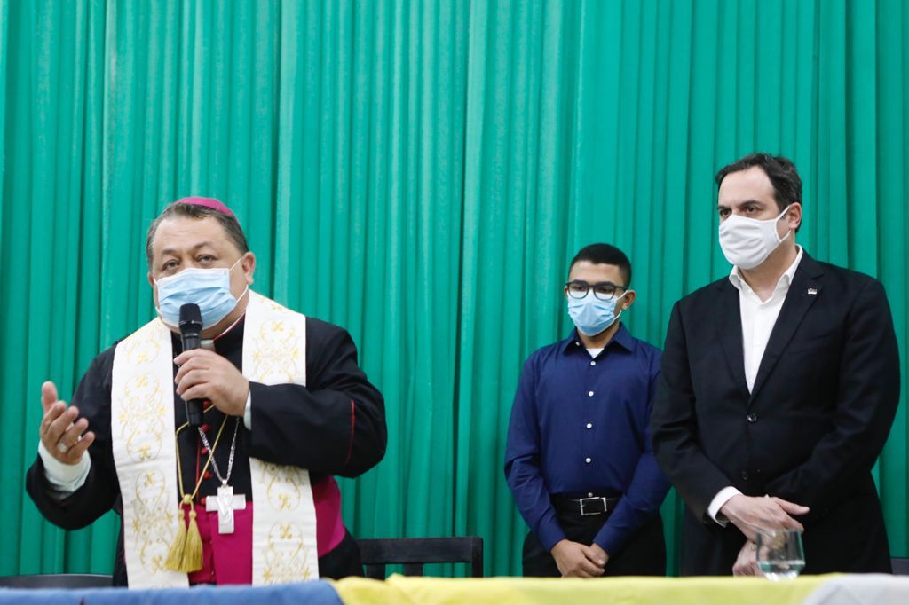 Paulo Câmara na posse do novo Bispo de Palmares