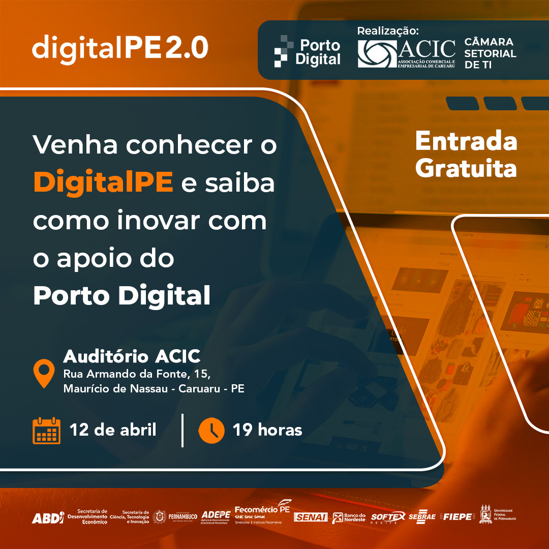 A Associação Comercial e Empresarial de Caruaru (Acic), por meio da Câmara Setorial de Tecnologia da Informação (TI), e o Porto Digital irão realizar, no próximo dia 12 de abril, o evento DigitalPE 2.0. O objetivo é apresentar o programa gratuito de mesmo nome, financiado pela Secretaria de Desenvolvimento Econômico e a Agência Brasileira de […]