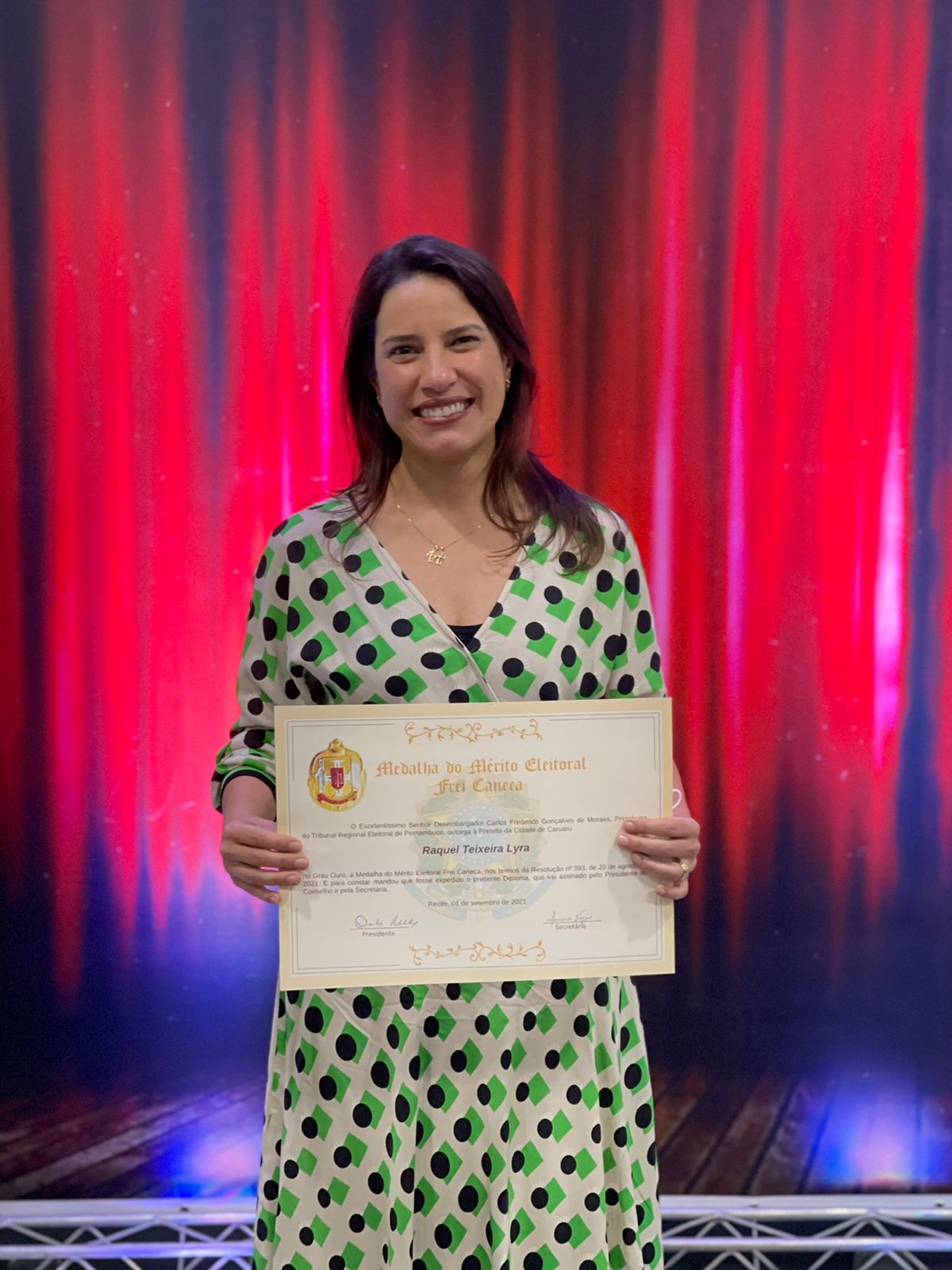 Justiça Eleitoral entrega prêmio a Raquel Lyra